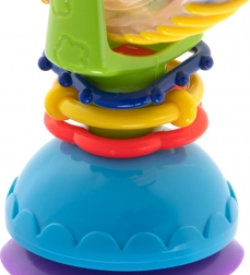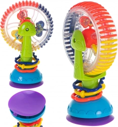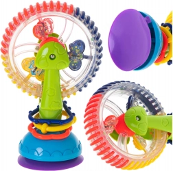 Ova interaktivna igračka za bebe nudi rotirajuće elemente, kuglice sa zvečkajućim efektom i snažnu vakuumsku podlogu koja je drži na mjestu. Vesele boje i rotirajući dijelovi privlače pozornost te potiču usredotočenost i koordinaciju oko–ruka.