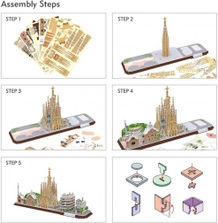 Ove 3D puzzle donose u vaš dom atmosferu Barcelone, uključujući slavnu SAGRADA FAMILIA i druge arhitektonske dragulje. Dijelovi su predrezani, lako se odvajaju iz ploče i prema uputama ih možete glatko sastaviti bez upotrebe ljepila i škara. Gotov model ističe se kao stilski dodatak dnevnom boravku, radnoj sobi ili dječjoj sobi.