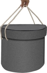 Zahvaljujući udobnim užetnim ručkama košaru lako prenesete iz sobe u sobu, na terasu ili na piknik. Neutralna siva košara i žuto-crna podloga uklopit će se u svaki interijer.
