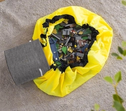 Pretvorite pospremanje u igru. Ova košara s integriranom podlogom omogućuje djeci da rasprostru kockice, lutke ili autiće na velikoj površini, a po završetku igre jednostavno povuku uzicu – sve se u trenu pretvara u prijenosnu vreću. Vodootporni materijali štite igračke, a visoki rub zadržava sitnice na mjestu.