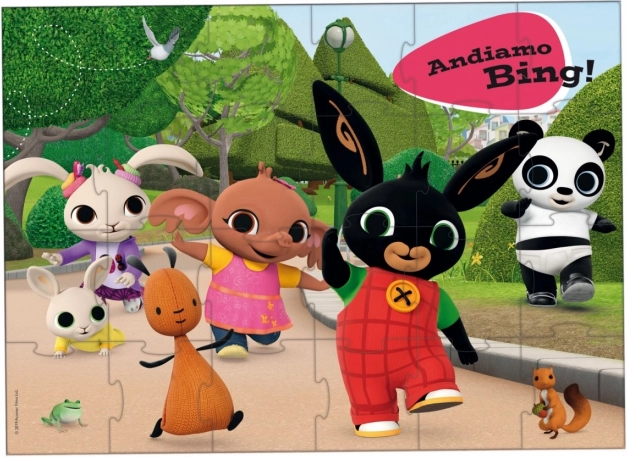 Podne puzzle s motivom omiljenog junaka BING razveselit će svako dijete. Zahvaljujući velikim, izdržljivim dijelovima odlično se slažu na podu te potiču finu motoriku, koncentraciju i prepoznavanje oblika i boja.