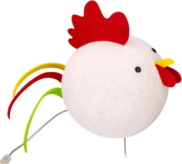 Preslatka lampica u obliku pijetla unosi razigranu atmosferu u svaki interijer. Ručni rad iz Italije, promjer kugle cca 24 cm i dolazi u šarenom poklon-pakiranju s ručkom – idealno kao dar. Odličan izbor za dječju sobu i kao dizajnerski dodatak. Proizvod nije igračka.