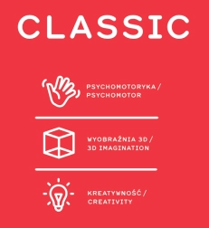 Klasični oblik kocaka izrađen je od sigurnog gumiranog materijala. Klasični blokovi su čvrsti i jednostavni te omogućuju izgradnju kompaktnih i izdržljivih konstrukcija. Pet veličina kocaka pruža širok raspon mogućnosti za gradnju i razvoj dječje mašte.