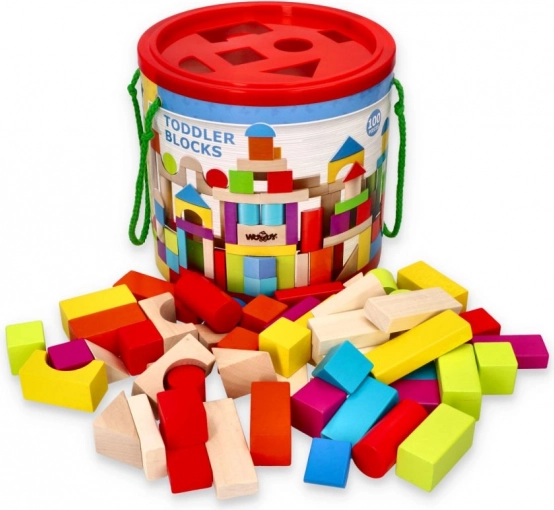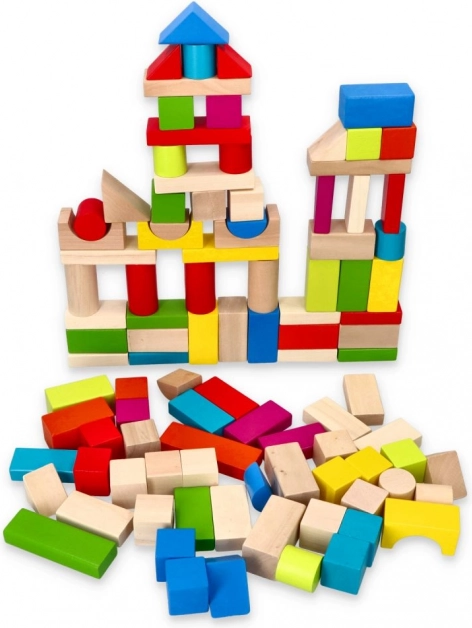 Uživajte u satima zabave s ovim setom od 100 komada šarenih drvenih kocaka. Izvrsno za izgradnju raznih struktura i poticanje kreativnosti vaše djece. Različiti oblici i jarke boje, poput crvene, plave, zelene i žute, pružaju beskrajne mogućnosti igre.