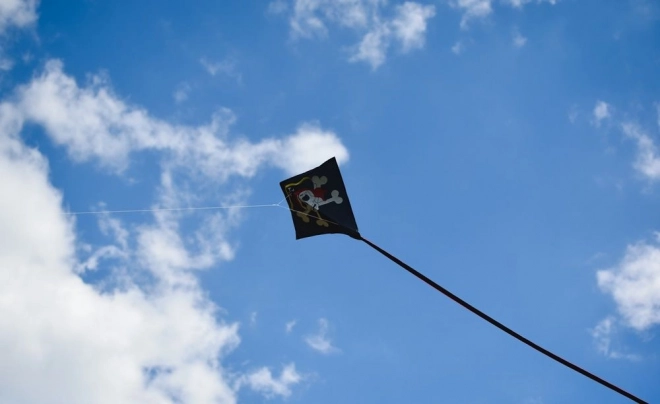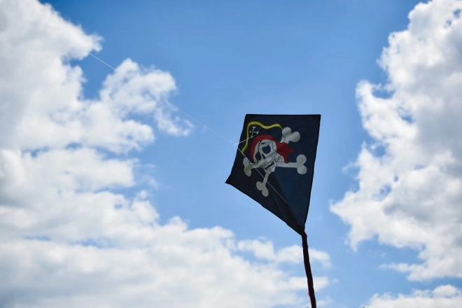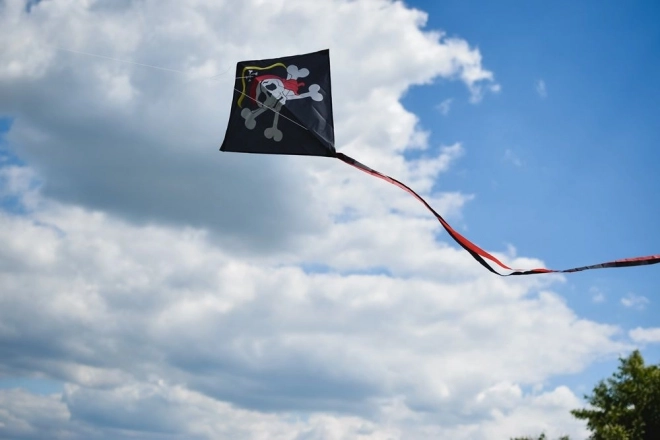 Crni motiv s lubanjom i prekriženim kostima savršeno je vidljiv na plavom nebu i vašem letenju daje dašak avanture.