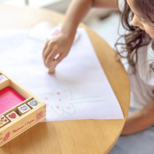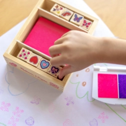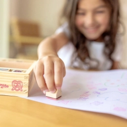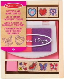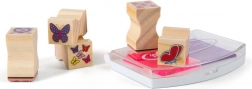 Žigi s leptirima i srčekima: Svi elementi smješteni su u elegantnoj drvenoj kutiji koja omogućuje jednostavno pospremanje nakon kreativne igre. Ovi žigi nude neograničene mogućnosti za različite kreativne projekte.