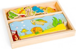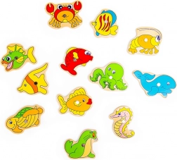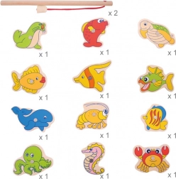 - 12 morskih stvorenja, 2 magnetska štapa, čvrsta drvena kutija (konstrukcija „nadrže”)