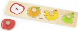 Ova kvalitetna drvena umetaljka s motivima voća (jabuka, naranča, banana, kruška) dizajnirana je za male dječje ruke. Svaki dio ima drvenu ručku za lako rukovanje, što potiče razvoj fine motorike i samostalnosti.