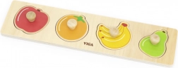 Otkrijte zabavne drvene puzzle s voćnim oblicima za najmlađe. Zahvaljujući praktičnim ručkama, dijelovi se lako drže, a djeca razvijaju finu motoriku, koordinaciju ruka–oko i prepoznavanje oblika i boja. Sigurna izrada od bojanog drva idealna je za djecu od 1 godine.