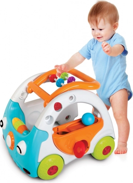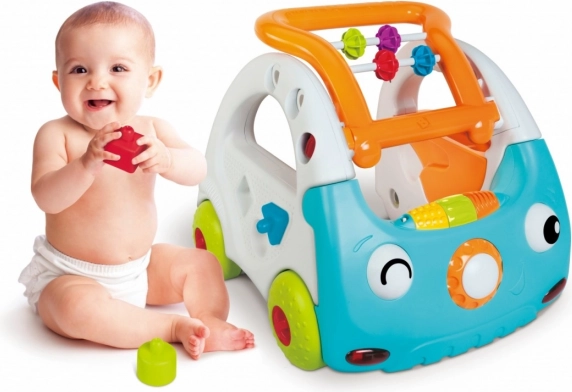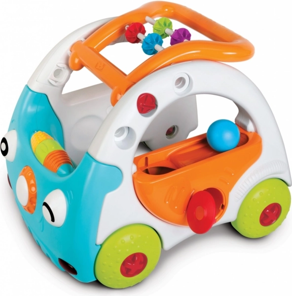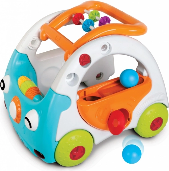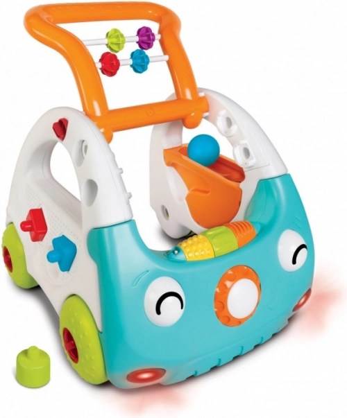 - Upravljač se može podesiti prema visini djeteta, a kotači se mogu blokirati kako bi autić služio kao stabilan oslonac za dijete koje uči stajati i održavati ravnotežu.