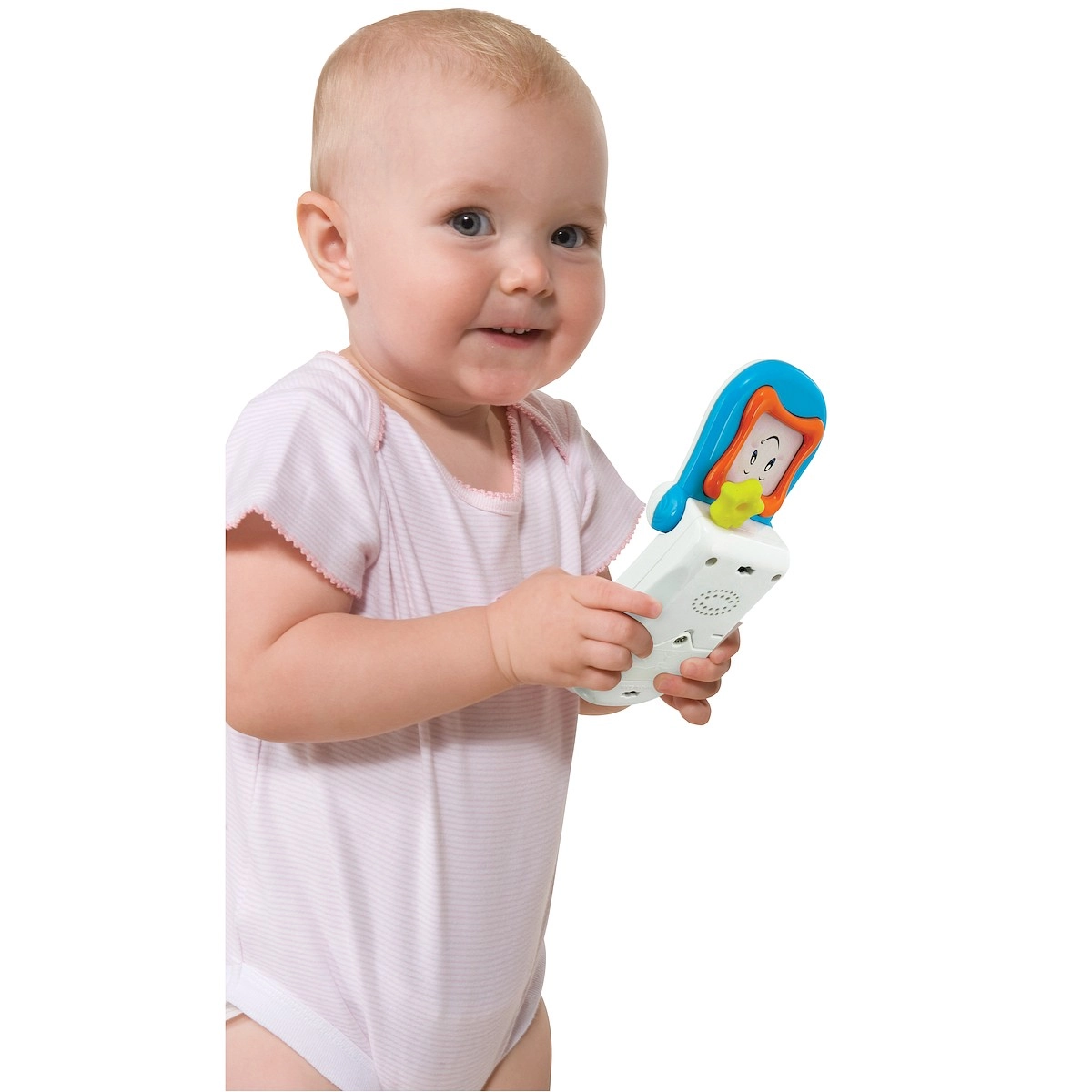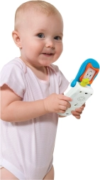 Slatki interaktivni telefon za najmlađe potiče prve riječi i razvoj osjetila. Nudi melodije, svjetlosne efekte, sigurno zrcalce, pokretne elemente i grickalicu za djecu kojoj rastu zubi.