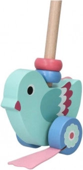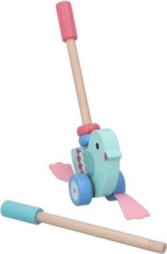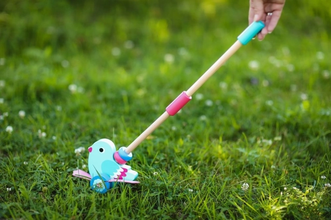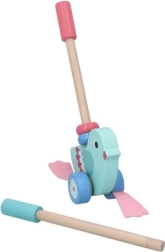 Ova lijepa drvena ptica za guranje dizajnirana je kako bi pomogla djeci od 12 mjeseci u razvoju motoričkih i ravnotežnih sposobnosti. Zahvaljujući odvojivoj šipki duljine 48 cm, igračku je lako gurati i njome upravljati. Cjelokupni dizajn kombinira tirkizno tijelo i ružičasta krila, što potiče dječju maštu i osjećaj za boje.