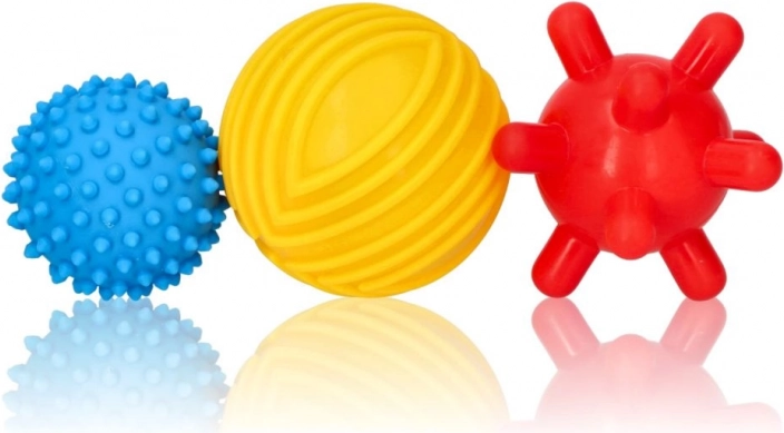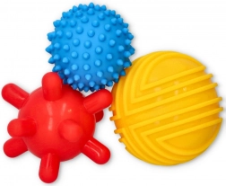 Set sadrži tri loptice izrađene od sigurne i izdržljive plastike. Loptice pomažu razvijati motoričke vještine djeteta te osiguravaju da je igra istodobno zabavna i edukativna.