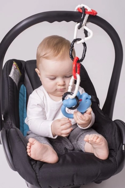 Praktične i sigurne crno-bijele spojne karike za najmlađe, od 0 mjeseci. Idealne za pričvršćivanje igračaka na kolica, autosjedalicu ili krevetić. Podupiru razvoj vida i fine motorike, lagane su, lako se čiste i imaju CE deklaraciju sukladnosti. Sigurne za novorođenčad, kontrastno crno-bijelo izvođenje i jednostavno održavanje za svakodnevnu uporabu.