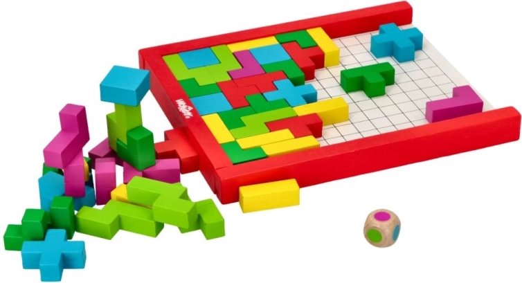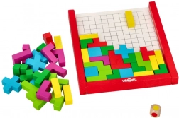 Otkrijte čar drvene puzzle igre u stilu Tetrisa, koja se sastoji od raznobojnih geometrijskih dijelova. Igra je osmišljena za razvoj prostorne mašte i kreativnosti kod djece od 3 godine. Svaki je dio izrađen od kvalitetnog drva i dizajniran tako da savršeno pristaje u mrežu.