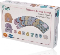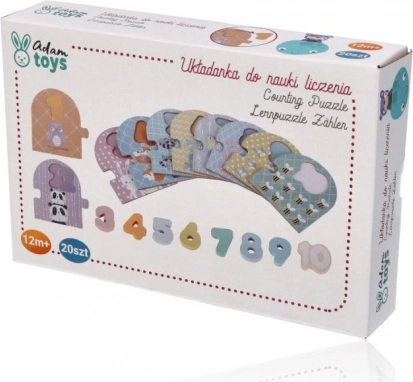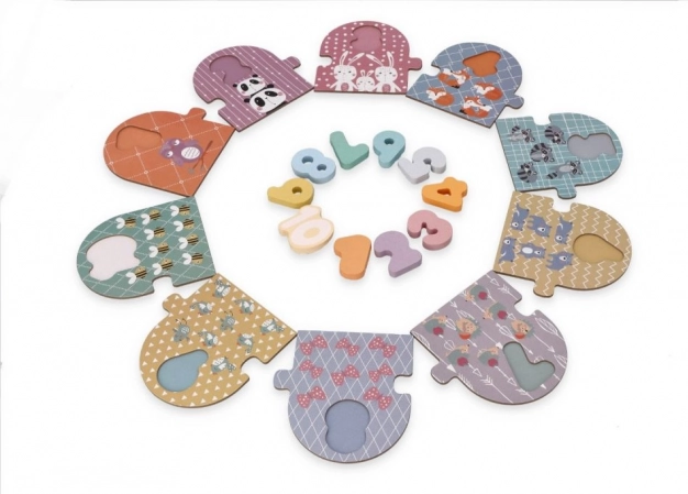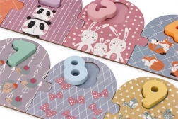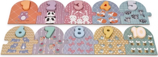 Ova kvalitetna drvena slagalica spaja zabavu i učenje. Svaki broj 1–10 ima svoju pločicu s preslatkim životinjama u odgovarajućem broju, pa dijete lako razumije odnos između znamenke i količine. Ispupčene, šarene znamenke dobro leže u malim dječjim rukama te podupiru razvoj fine motorike i vizualne percepcije.