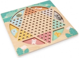 Obostrana drvena ploča dimenzija približno 30 × 30 cm ukrašena je nježnim motivima životinjica i dopunjena šarenim, lako prihvatljivim figuricama. Zahvaljujući čvrstoj izradi i preglednoj grafici, idealna je za zajedničko igranje djece i odraslih.