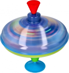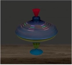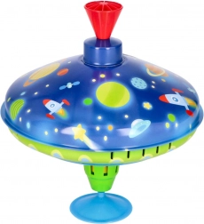 Ova šarena metalna zvrkulja s motivima svemira osvaja na prvi pogled. Zahvaljujući integriranoj podlozi čvrsto stoji na mjestu, pa je prikladna i za najmlađu djecu. Jednostavnim pritiskanjem gornje ručke zvrkulja se zavrti, zasvijetle LED svjetla i proizvede karakterističan, ali ugodan zvuk koji naglašava radost igre.