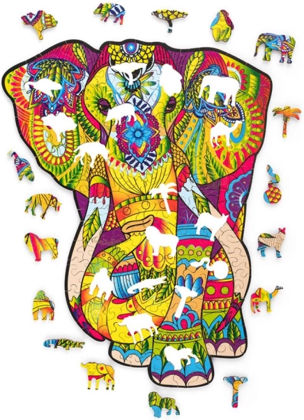 Ove detaljno izrađene puzzle slona od kvalitetnog drva očarat će profinjenim uzorcima i intenzivnim bojama. Idealno za tinejdžere i odrasle koji traže stilsku zabavu i dizajnerski dodatak interijeru.