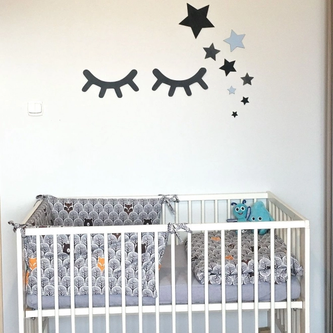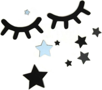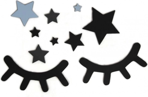 Stvorite ugodnu atmosferu u trenu. Set dekorativnih naljepnica “oči s plavim zvjezdicama” unosi u interijer nježnost i razigranost. Kombinacija crnih trepavica i svijetlo/plavo usklađenih zvjezdica pristaje dječjim sobama, vrtićima i kutcima za spavanje.