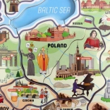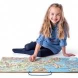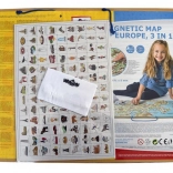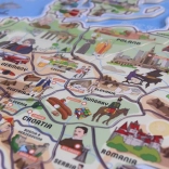 Ova interaktivna karta Europe omogućuje djeci doživjeti Europu kao cjelinu, punu zanimljivosti. Djeca mogu slagati dijelove koji predstavljaju pojedine države na magnetsku podlogu, što im pomaže utvrditi znanje o položaju zemalja na starom kontinentu. Zahvaljujući slikama na dijelovima, djeca lako prepoznaju karakteristične elemente svake države, poput građevinskih znamenitosti, prirodnih resursa ili proizvodnje specifične za određeno područje.