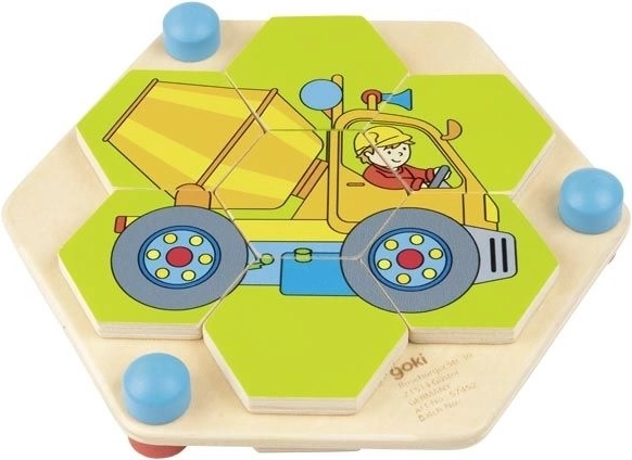 Omogućite djeci uranjanje u svijet kreativnosti s ovom prekrasnom drvenom šesterokutnom slagalicom. Svaki od rotirajućih heksagona mora biti pravilno postavljen kako bi stvorio šarenu sliku građevinskih strojeva. Ova zagonetka smještena je na čvrstoj, prirodnoj drvenoj ploči, koja jamči dugotrajnost i ekološku prihvatljivost. Igračka ne samo da donosi sate zabave, već i pomaže u razvoju logičkog razmišljanja i koordinacije oko-ruka.