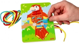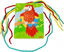 Razvijte finu motoriku i koncentraciju vašeg djeteta s drvenim provlakajućim igračkama u obliku papige, lava i zebre od marke Goki. Ove igračke su izrađene od drveta, što osigurava njihovu izdržljivost i lakšu manipulaciju za djecu. Pakiranje sadrži tri slike i šarene vezice za kreativnu zabavu.
