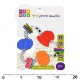 Veselo dječje zvečkalo u obliku trokuta dužine 14 cm zaokupit će bebu zahvaljujući šarenom dizajnu i nježnim zvukovima zveckanja, koji umiruju i potiču razvoj grube motorike, lak prianjan i koordinaciju oko–ruka. Siguran izbor za djecu od rođenja.
