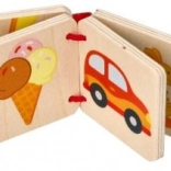 Drvena mini-knjižica Goki idealna je za najmlađu djecu koja se upoznaju s prvim riječima i slikama. Svaka knjižica sadrži: