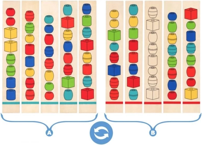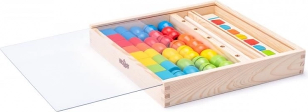 Kreativan i edukativan set koji spaja učenje i zabavu. Djeca slažu obojene perle prema predlošcima na štapove te tako razvijaju vizualno pamćenje, logičko razmišljanje, matematičke vještine i finu motoriku. Sve je pohranjeno u čvrstoj drvenoj kutiji koja služi i kao baza za igru.