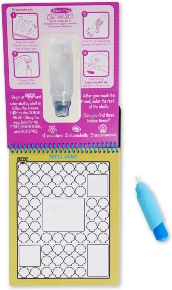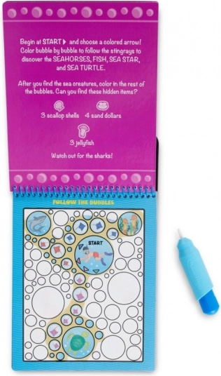 Interaktivna vodena bojanka iz edicije On the Go donosi djeci sate stvaralačke zabave. Punivi vodeni flomaster otkriva na stranicama morski svijet, zadatke i labirinte koji nakon sušenja ponovno nestaju – i slikanje može početi ispočetka.