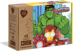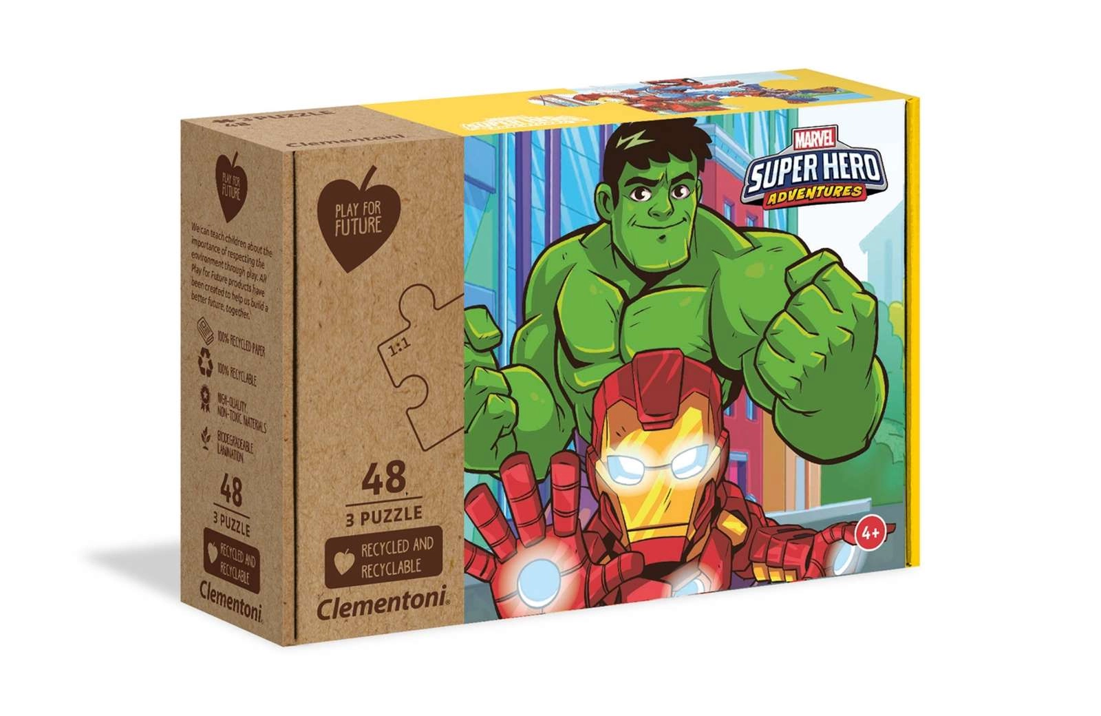Dječji set triju slagalica s motivima MARVEL Super Hero Adventures nudi 3 slike po 48 dijelova dimenzija 32 × 22 cm. Izrađeno od 100% recikliranih i reciklabilnih materijala, potiče zapažanje, logičko razmišljanje i manualne vještine. Idealan izbor zabave za djecu od 4 godine i cijelu obitelj.