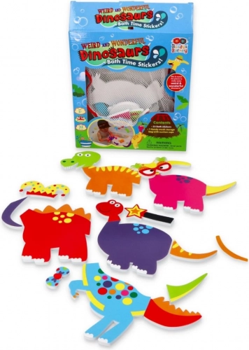 Stvorite vlastiti dinosauri park izravno u kadi! Ovaj zabavni set sadrži 33 pjenaste naljepnice za kupanje i praktičnu mrežicu s vakuumskim držačima za lako sušenje i pohranu. Dinosauri imaju luda lica i kostime – od jagodastih naočala do krune – koji će nasmijati djecu i potaknuti njihovu kreativnost i finu motoriku.