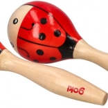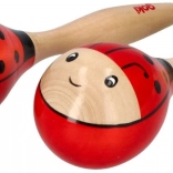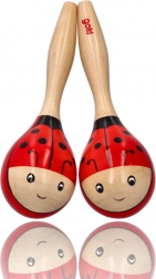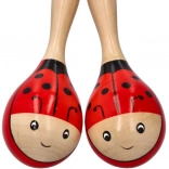 Vesele rumba kugle s motivom bubamara dizajnirane su za dječje ruke – imaju glatke, ergonomske drvene drške i izdržljive, šareno lakirane glavice. Prilikom sviranja stvaraju ugodne zveckave tonove koji potiču djecu na otkrivanje ritma i zajedničko muziciranje.