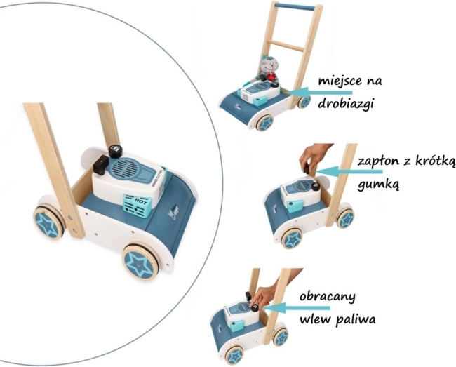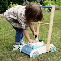 Drvena kosilica sa zvukom idealan je izbor za sve male vrtlara. Ova igračka je dizajnirana kako bi pomogla djeci poboljšati njihovu koordinaciju i ravnotežu. Iako potpomaže hodanje, nije namijenjena kao tradicionalna hodalica za učenje prvih koraka.