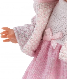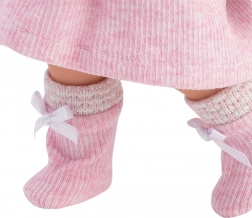 Valeria je odjevena u ružičastu haljinu i džemper s ukrasnim mašnama, izrađene od organskog pamuka i recikliranih materijala za najbolju udobnost i stil.