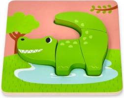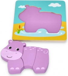 Otkrijte zabavan set od četiri drvene slagalice sa životinjama – krokodil, nilskog konja, sovu i lava. Robusni dijelovi za male ruke potiču razvoj fine motorike, koordinacije oko–ruka i prepoznavanja oblika. Svaka slagalica ima dimenzije 16,5 × 16,5 cm i idealna je za prvo slaganje.