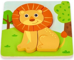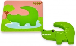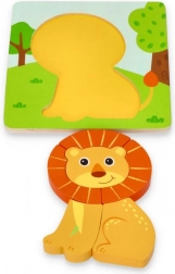 Djeca će redom složiti krokodila, nilskog konja, sovu i lava – svaki motiv na zasebnoj drvenoj ploči potiče koncentraciju i radost uspjeha.