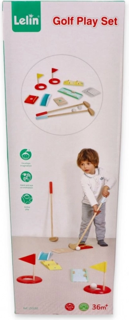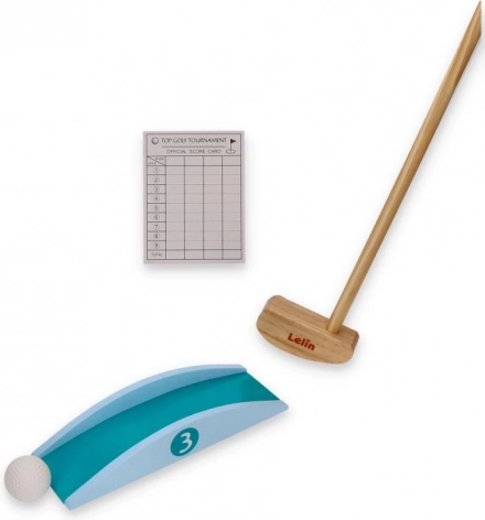 Dječji set minigolfa LELIN donosi kući zabavnu igru za najmlađe i njihove roditelje. Zahvaljujući drvenim palicama i šarenim preprekama djeca vježbaju finu motoriku i koordinaciju, uče se koncentraciji i fair playu. Idealno za djecu od 3 godine, sigurna izrada s CE certifikatom i jednostavna uporaba u interijeru.