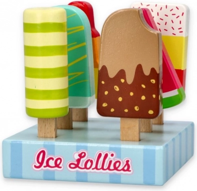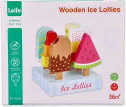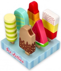 Šarena set drvenih sladoleda na praktičnom stalku donosi djeci od 3 godine nadalje sate kreativne igre. Potiče maštu, igranje uloga trgovine i slastičarnice te razvija finu motoriku i koordinaciju oko–ruka. Izdržljiva drvena izrada, sigurni premazi i simpatični dizajni jamče da će sladoledi postati omiljena igračka u svakoj dječjoj sobi.