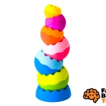 Uspješna kombinacija atraktivnog dizajna koji potiče maštu i kreativnost. Slaganjem oblika različitih veličina aktiviraju se sitni mišići i uči se fina motorika. Podržava pravilan razvoj koordinacije oko-ruka i zdrav psihomotorički razvoj. Sklopivi toranj ima 7 dijelova koje se može na razne načine okretati, razdvajati i slagati.