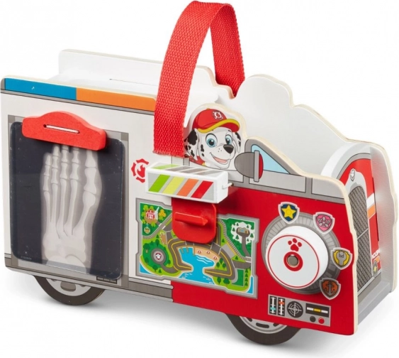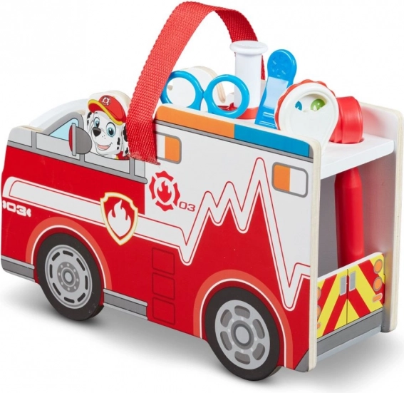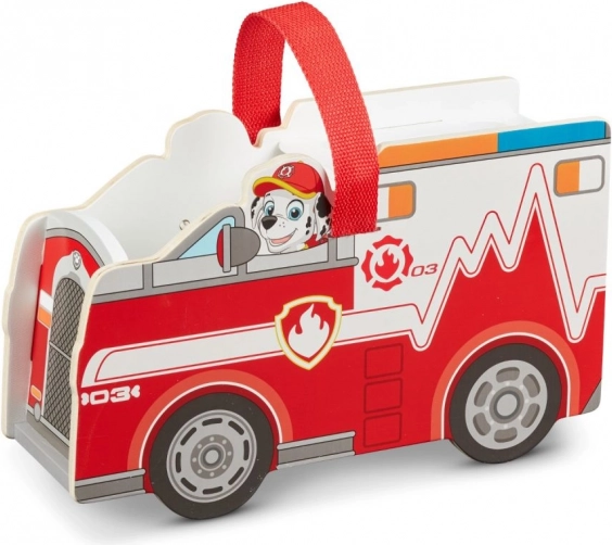 Ovo drveno spasilačko vozilo u obliku vatrogasnog auta oduševit će male junake promišljenom izradom, spremišnim prostorom za dodatke i licenciranim motivima PAW PATROL. Zahvaljujući glatkim rubovima i robusnoj konstrukciji, igra je sigurna i dugotrajno izdržljiva.
