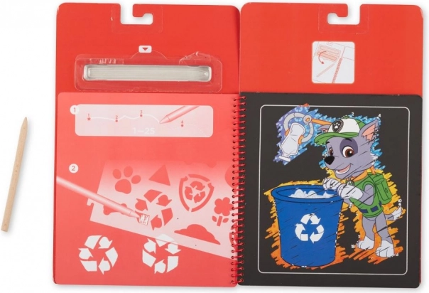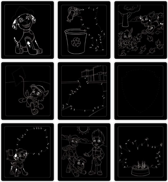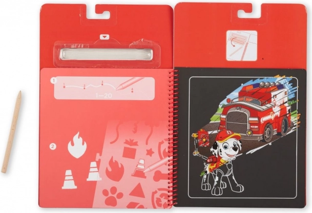 Ispod crnog sloja skrivaju se raznobojne scene s Marshallom. Djeca će uživati u trenutačnom “wow” efektu pri svakom grebanju.