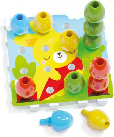 Mozaika Jumbo Peggy idealna je igračka za najmlađe. Zahvaljujući velikim i zaobljenim komponentama lako se hvataju i slažu. Djeca mogu stvarati zadivljujuće trodimenzionalne kompozicije slaganjem čepića jedne na druge.