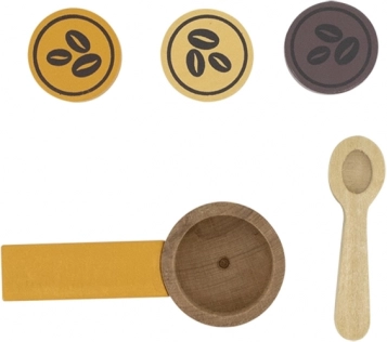 - Šalica, žličica, ručni držač, drvene kapsule/„zrna”, kartonsko „mlijeko”