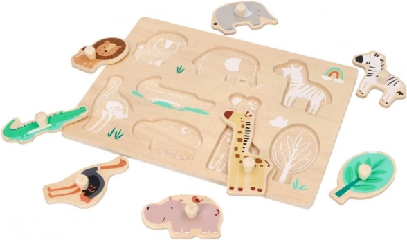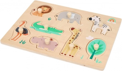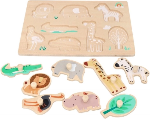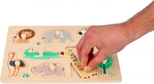 Ova drvena slagalica s motivima Safari idealna je za djecu od 12 mjeseci. Svaki dio slagalice predstavlja različite životinje, poput lava, slona ili žirafe, što podržava prepoznavanje životinja. Slagalica je dizajnirana s ručkama za lako držanje i manipulaciju, što je izvrsno za razvoj fine motorike kod male djece.