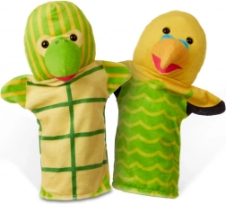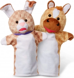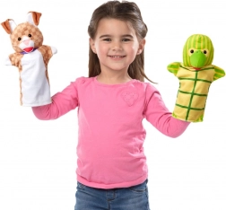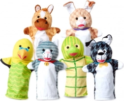 Uz ovaj šareni set lutaka za ruku oživjet ćete svako kućno kazalište. Djeca mogu lako umetnuti ruku u lutku i pokrenuti životinjice – psića, mačkicu, zeku, konjića, papigu ili kornjaču – te stvarati priče pune emocija i smijeha. Lutke su mekane, sigurne i prikladne za male dječje ruke.