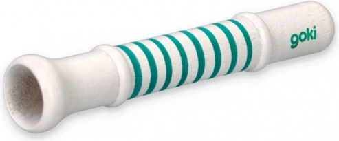 Drvena zviždaljka Goki u nježnim pastelnim bojama idealan je prvi glazbeni instrument za djecu. Pri puhanju proizvodi viši, jasan ton poznat s vašara, koji motivira djecu na otkrivanje zvukova i ritma. Zahvaljujući glatkom drvu i sitnim uzorcima, ugodno leži u ruci i poziva na ponovljenu igru.