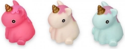 Otkrijte čarobni svijet kupanja sa setom jednoroga u nježnim bojama. Svaki jednorog ima zlatni rog i veselu grivu, koji potiču dječju maštu. Zahvaljujući ugodnom mekom materijalu, lako se stišću i idealni su za male dječje ruke.