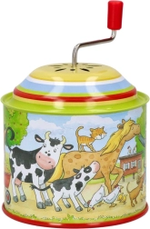 Glazbena kutija ukrašena je šarenom ilustracijom farme s likovima kao što su krave, konji, mačke i kokoši.